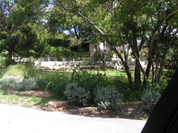 west lake hills. after years of legal disputes with the growing city of austin, WLH became a sort of island. it refused to conform with city life and enforced rigid local codes to preserve the rural feel of the area. and while we may own an acre, the city feels that they own the trees. it was explained to me that each home is to be surrounded by a donut of forest. we have a 50 ft setback and we can only landscape 30 ft around our home. the rest is to left as it is. while this seems problematic, it has been instrumental to why we like the area so much. I enjoy the lack of sparwling front yards. of course, WLH has almost no flat land. by WLH standards our lot is flat. many homes are perched on slopes over canyons.