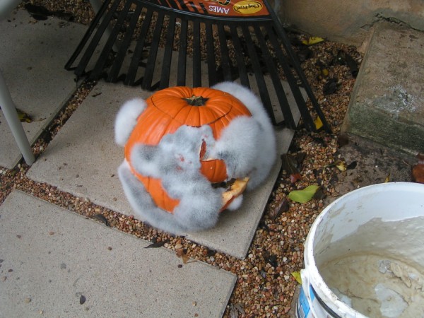 lets all take a moment of silence to mourn the loss of our pumpkin. it couldn't hold on till halloween. it grew fuzz and collapsed over night