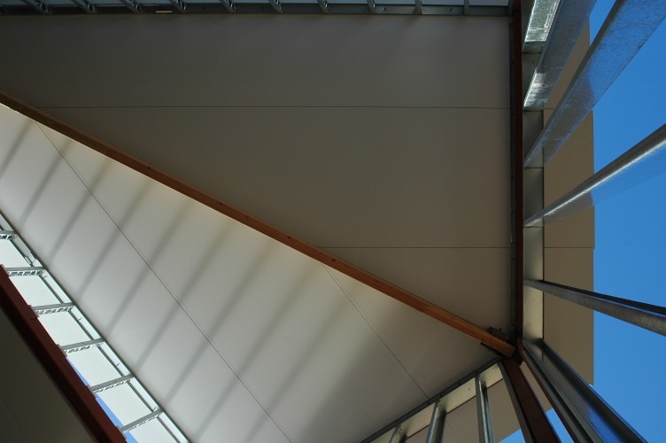 modal is nearing the end of their phase of the project. the pic below is looking up at towards the butterfly roof in the tower.