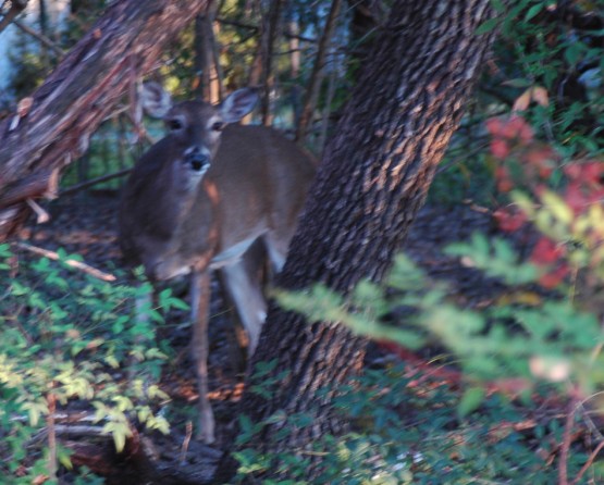 I spent most of the day handling a jack hammer. the previous plumber had the downstairs toilet rough out too close to the wall. anyhow, while taking a break from all that I looked out the window and somebody was looking back at me. this happens often but I today I got the the camera before they ran off.