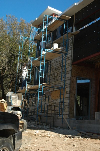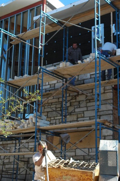 the stone wall is going up fast. these guys really work hard.