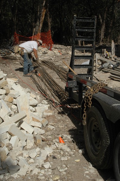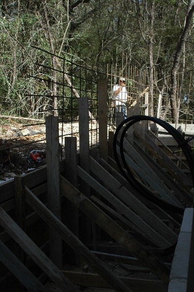 retaining wall crew was getting the rebar ready and making trenches, piping to allow for utilities to get through the wall.