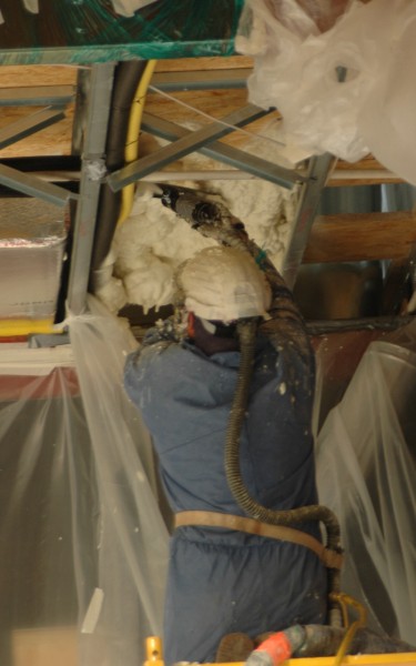 spray foam insulation crew worked into the night. it was very windy yesterday so a job they figured to be quick turned into a long battle with their masking and prep.
