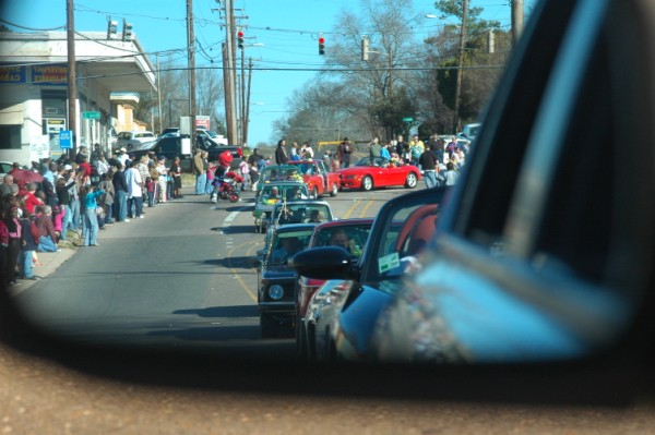 we ran out of beads to throw so we tossed out crayons, taco bell fire salsa, sonic ketchup packs and even the emptied containers from the treats we'd thrown out. some lucky folks got candy made from ugly fruit that we found at the asian grocery. (pic below was taken via mirror)