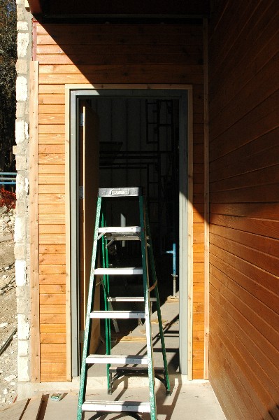 in fact most of the trim work around the cedar siding is wrapping up. the metal siding is scheduled to begin it's leap up to the wall surfaces.