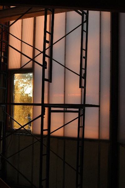 the polygal wall was all orangey and purplish with the glow of evening creeping onto the house.