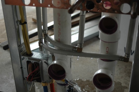 still making the push to get everything ready for inspectors. the plumbers have wrapped it up. most fixtures are installed, all lines are capped and pressurized with city water!
