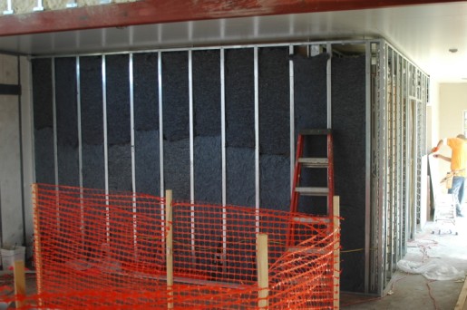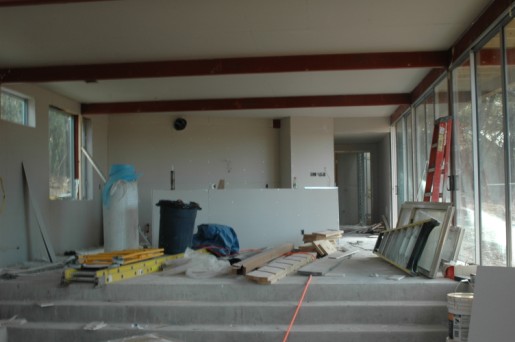 rock hanging crew is over half way done. the floor is covered with dust and scrap