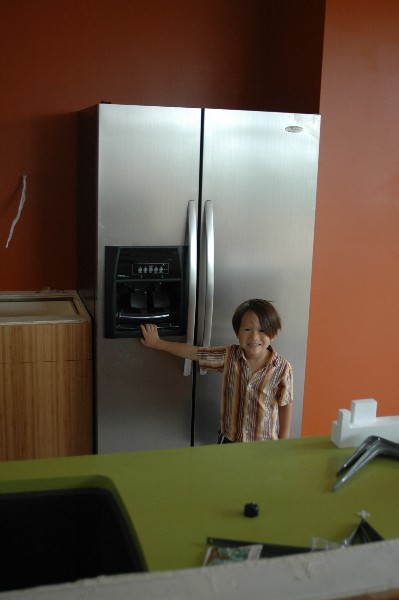 fridge unpacked, hooked up and awaiting electricity