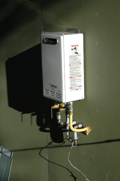 plumbers connected the tankless water heaters