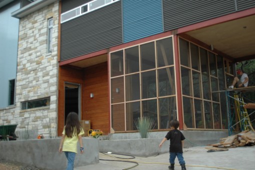 the screening trim for the screen room is mostly done. I got a call in the early afternoon that the screen room doors were in town. we'd been waiting for them for a while so I ran to go pick them up myself.