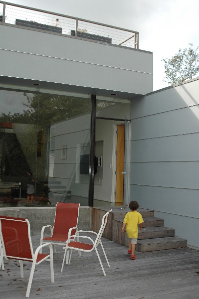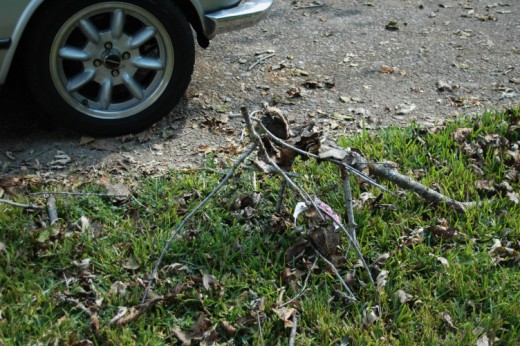 I've written before on how well the invisible fence works. the dogs can roam freely over most of our one acre lot. but there is a fence that seperates most of the front yard from the back. they found that they could use the doggie door to get into the screen room, then push out the screen on the front door to the entry and get to the front yard (behind the bird of paradise is where they kept punching out the screen)