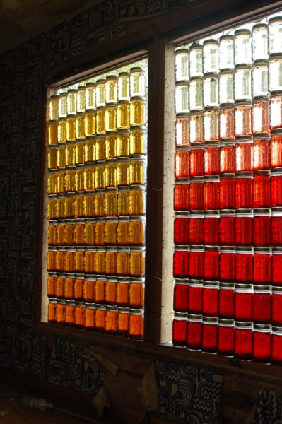 below is my $2 doggie door. I used two different flaps of contrasting rubber. I don't know why, I just like it better that way.