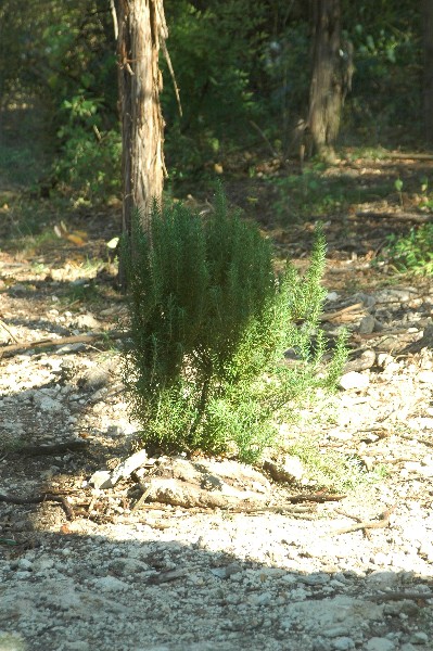 the past few weeks have involved lots of hole digging. many new trees and also trimmed or removed a few cedar that were close to the house or choking oaks. a bare area was an ideal location for this handsome rosemary. we sold our other house that had a rosemary that was larger than a volkswagen. we now have a nice view of our new rosemary from the kitchen.