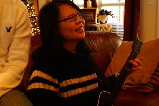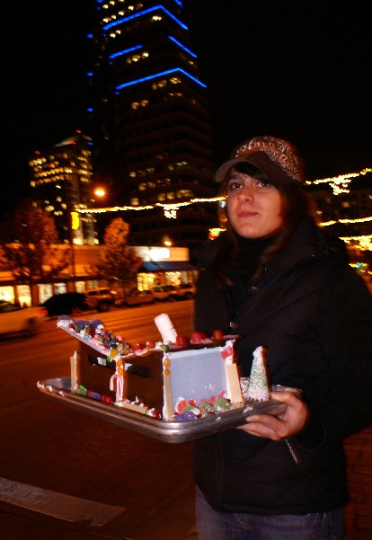 sunday night we got back on our holiday party agenda. this was a grinch themed party at a neighbor's house. kat was tired and not into walking the five doors down and then up their driveway. so we drove. we only got about 3 houses down when we found the street was getting clogged with cars. a valet attendant found us a spot on the side of the rd. then we were shuttled via van up the driveway. temps dropped 30 degrees in just over an hours time. it got cold quick.