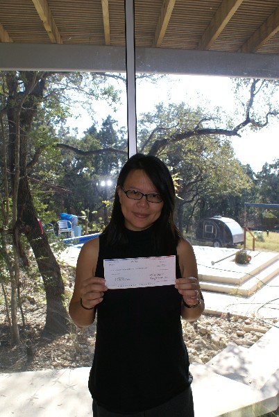 kat enjoying a non-alcoholic beverage. I drank wine with the neighbors. the food served was delicious.