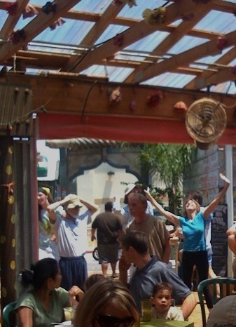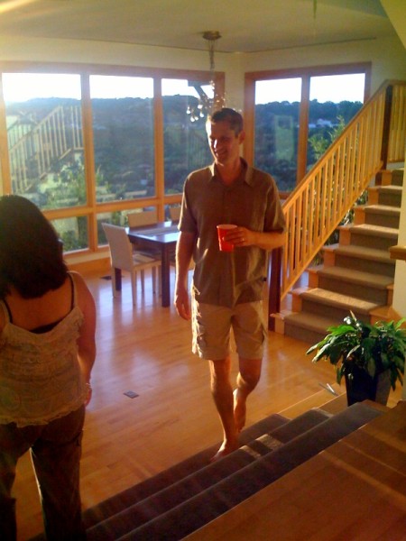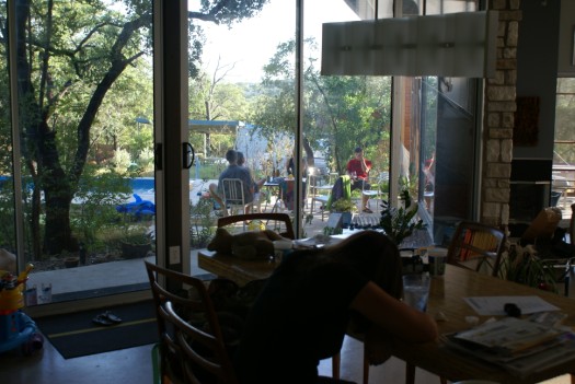 austintreehouse has a huge amount of glass to capture the view. unfortunately, now that summer is officially HOT, it's also catching some heat.  as the sun set, we all found ourselves hiding in nooks and crannies.  then, as it slipped behind the hills, the temp instantly plunged back to humane levels.