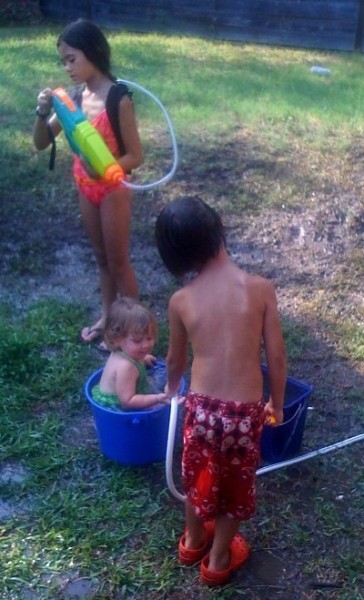 our regular trip to RBI was put off till next friday.  we sat outside and let the kids swim.