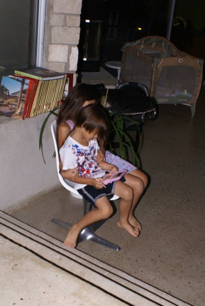 I don't think we left austin.  school starts tomorrow so we made a last ditch effort to reward the kids (the older two).  we made a 36 hr trip to san antonio, nana stayed home and caught up on her videos w/ the baby.