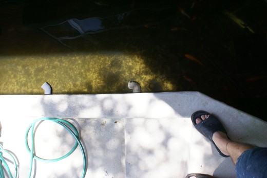found a greasy neighborhood hippie who was willing to get in there with the koi.  he works for tecate.  I just hope his stinky feet don't give the koi some slacker fungus infection.