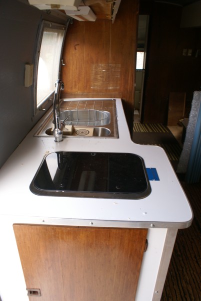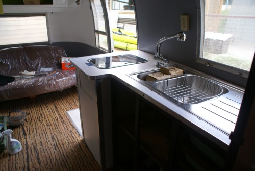 spent half a day working on the airstream.  installed the counter trim, smev cooktop, the sink and the faucet.