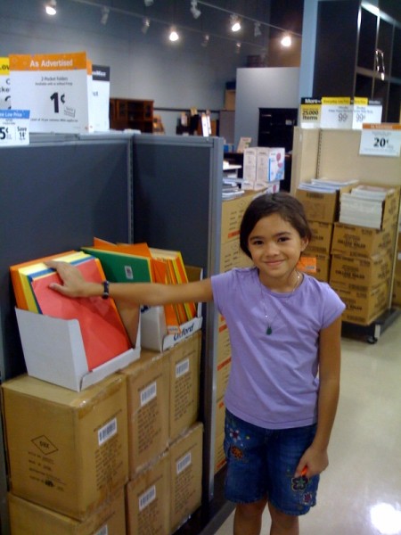 we got our back to school supplies after school started.  we had fun at officemax.  many items on the list were priced at just .01; one cent.  they even have a complimentary automatic coffee machine near the front door.  the staff asked if the cafe mocha was to my liking.  it was!  her school supply list included a usb flash drive, that was full price.