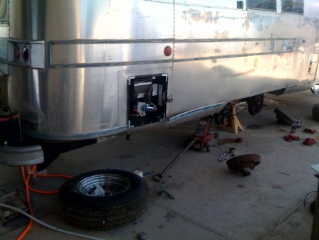 we sold our teardrop camper and our 1970 airstream safari. we have a camping trip scheduled so I drug our 1968 overlander to the local airstream service center. we are going to throw $ at it till it's ready to serve as MobileModHouse. pic above shows NEW water heater and also rebuilding of the brakes and bearings being repacked and resealed. the pic below shows all the old copper plumbing they have removed. it's being replaced with PEX and all new fixtures.