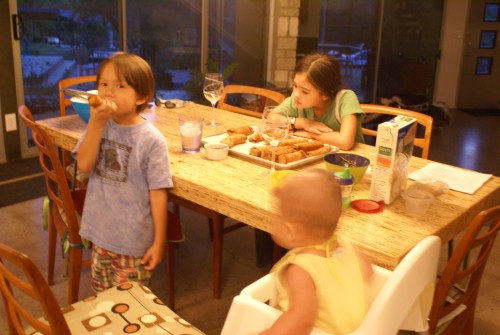 neighbor girls spent the day here while their dad enjoyed ACL. we didn't attempt doing acl this year since the chunk would be too much to handle at a festival. we can hear the drumming from zilker park inside our bedroom. saturday had 65k people at acl and 60k football fans at the UT game just up the street. austin was packed.