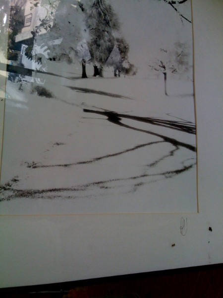 we have some photos I did for a show many years back. they had been in storage for a good while. some insects had wandered between the matt and the glass where they became stuck. kat had asked if I would clean them out. I opted to leave them as it was an act of nature, "it adds to the authenticty" I rebutted with an air of art snobbery.