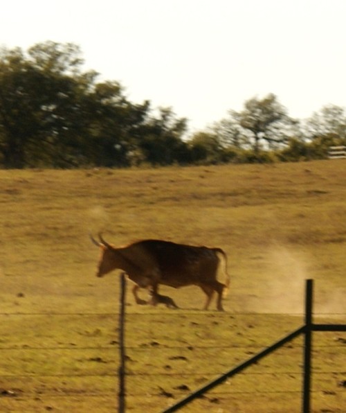 we were hiking back from the lake when I noticed the cows were running and making sounds I don't usually hear from cattle. sort of sounded like a walrus saying "BLUUUUURGH-BRBRBRAAAHCH" through a tuba plugged up with a sick cat. I later learned that was cow talk for "this ugly freakin' rat is biting my ankles!"