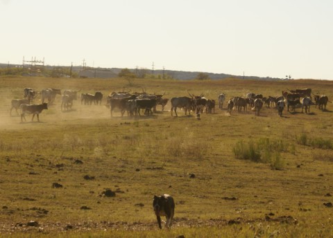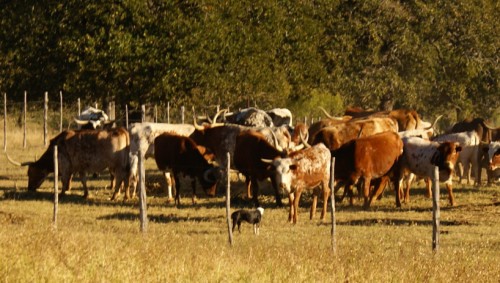 marvin was back at the cattle herding. they tried very hard to stomp him into the dirt and I saw several attempts to spear him with those long horns. later that evening, I had to carry eichler back to the airstream. she'd developed some sort of attraction to a male boston terrier named cooper. unfortunately she exhibited her emotions in a very dominating sort of display. me and my problem dogs.
