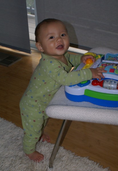 he stands, crawls and...
