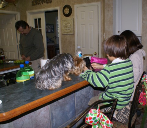 it's a k-9 paradise there. chicken jerky for breakfast and kitchen counters make nice doggie observation decks.