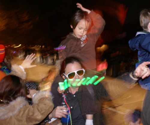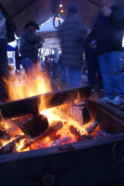 this fire kept me warm for 14 hours. the sun was down and we could hear the parade coming.