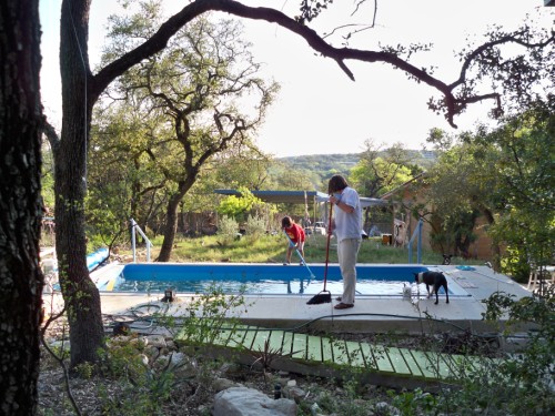 #1 son and I cleaned the pool, adjusted the chemistry and he enjoyed the first swim of 2009