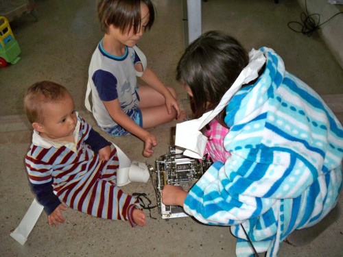 kids are still enjoying the disassembly of the antique calculator