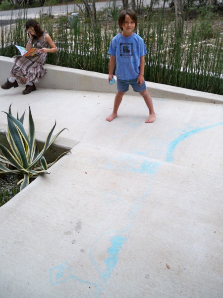 she was happy to read her highlights magazine while he made "Chalk World". he explained that the homes in his Chalk World were modern "because modern homes often have flat tops"