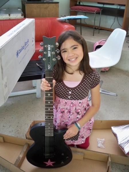 she got her new guitar. it does sound better and she does appreciate the lighter weight.