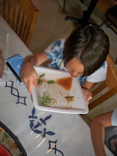 our server warned us this dish was likely too spicy for children as it had fresh jalapeno in it. clearly, he was wrong. he even sucked the juices off the plate.
