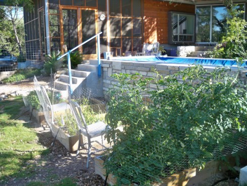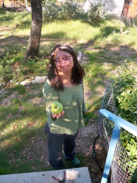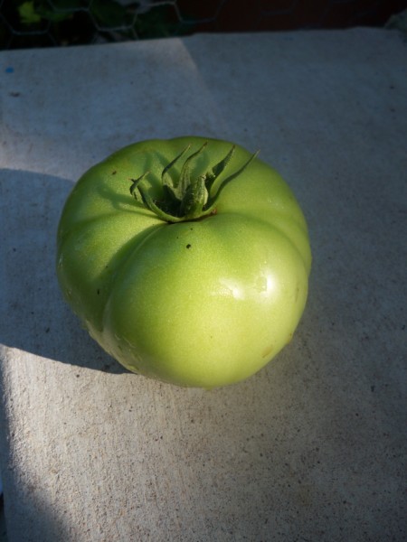 the deer have found our garden. first, it was a few leaves from the bean plants. but now... they have even started to trample what they don't eat. we lost a large bell pepper and found this green tomato was on the ground where they sampled the vine.