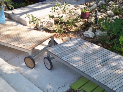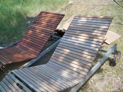 I sanded the deck lounge chairs. the wood was looking rather sad.