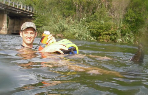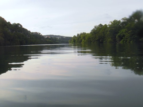 we caught the current under the red bud trail bridge. it only takes about five minutes to pass the island, then the river (ladybird lake) widens and slows considerably.