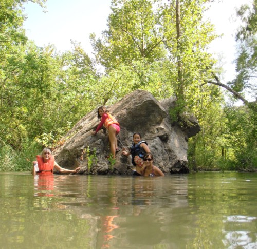 we had friends come in from shreveport for the weekend. took off from the north pt of red bud island and did the usual hike up stream. troy had a footwear failure and had to turn back (water shoes are a must for this trip). it took us over an hr to find him.