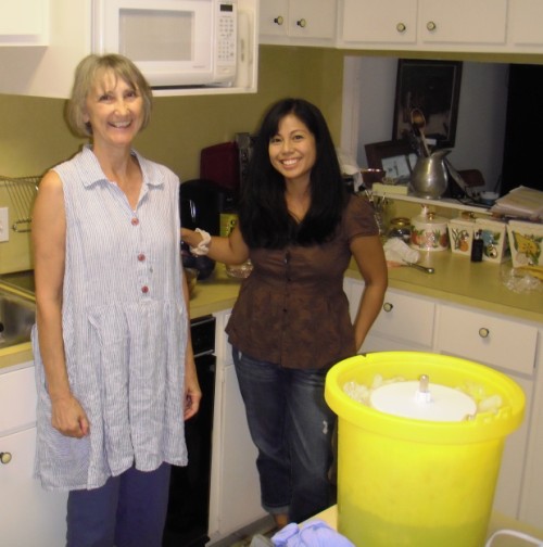 we used a watermelon to weigh it down while the glue set up. melon was retained for shaking later on in the weekend.