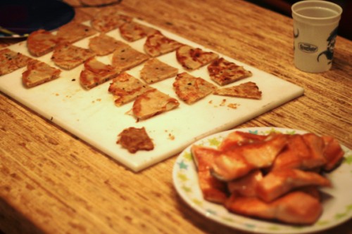 most of the weekend was spent relaxing with friends. kat made scallion cakes.