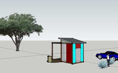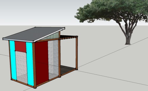 a few weeks back we visited our property in wimberley and admired the huge oak near the back of the property. while at home caring for a baby this week, I managed to spend some time on sketchup. made this scale model and got spousal approval. should not cost much money or time to get this small pavillion started. it measures just 8ft x 16ft.