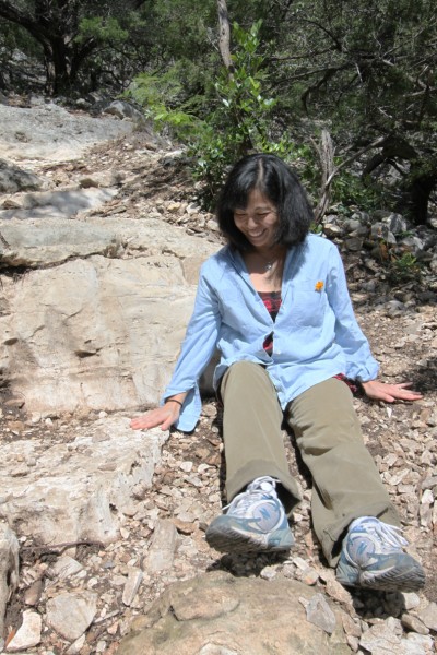 going down is often slower than going up. it was a bit steep with loose rocks. kat has mountain goat like ability to make a good pace. daughter is as able as her mother.