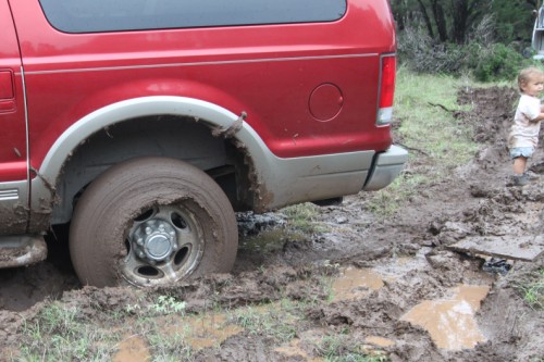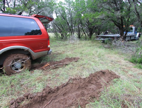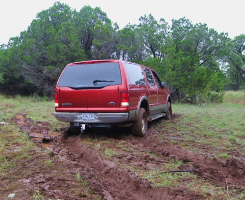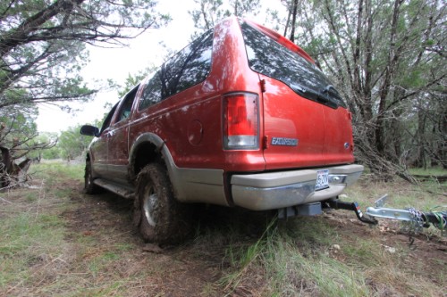 got the airstream in with no problems but getting my mom's little teardrop trailer in didn't go so well. the 8k lb excursion got stuck, even in 4wd.