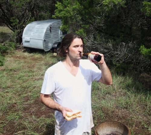 so we sold our ACL tix, got some $ to put towards our wimberley project. we were relieved that we did not have to worry about rain and mud like all the people headed to the festival. we hooked up the airstream and headed to wimberley. we packed post hole diggers, cordless drills, screws and concrete mixing tub etc. big plans we had!