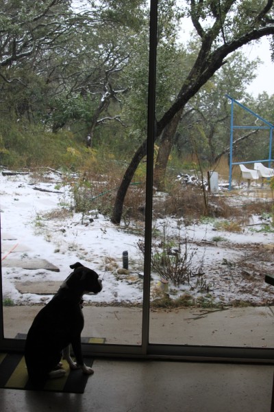 while the back yard received a blanket of snow, the back wall of glass transformed the house into a special weather viewing apparatus.
